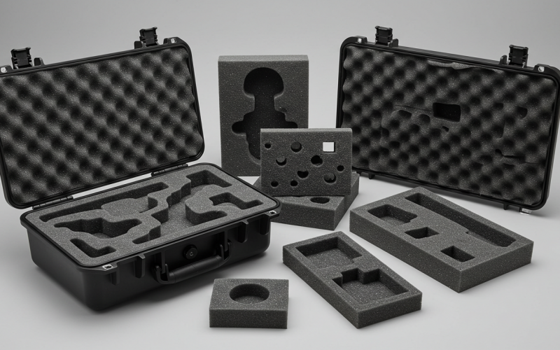 We design and customize the most advanced case solutions using Pelican, SKB, Seahorse, Gemstar, Cabbage, ECS, Flambeau, Melmat, Nanuk, Platt, Plano and others. For our inserts and cushioning systems we use the widest variety of PU, PE, EPE, XLPE, and Zote foams in a wide range of densities, colors, treatments, and finishes, and we custom fabricate metal and plastic accessories. We also integrate casters, document holders, humidity indicator, bash plates and more to develop a case solution that meets and exceeds your needs.