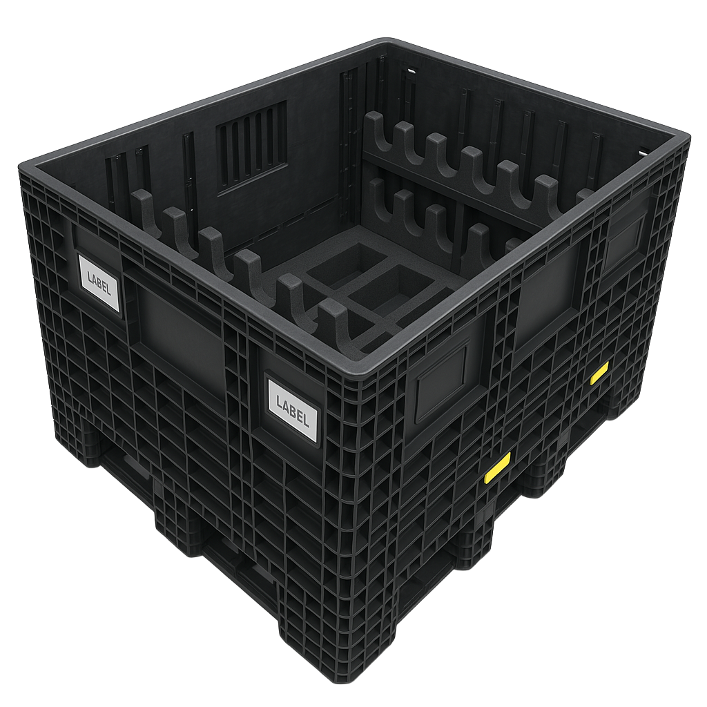 Our bulk bin solutions and dunnage provide robust protection for large-volume parts and heavier components during handling and distribution. We use custom-cut and assembled PE/EPE/XLPE/PU foams, plastic corrugated, laminated PCORR, WorldCell, HDPE, and other materials and components to create optimal part protection using partition, divider, and shaped cavity design methods. From Class A surface protection to anti-static/ESD protection to fire retardant foams, we can design and build custom dunnage to meet your needs.