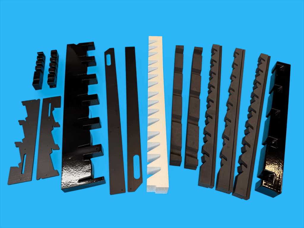 We’ve developed hundreds of custom partition and divider designs. We use custom-cut and assembled PE/EPE/XLPE/PU foams, plastic corrugated, laminated PCORR, WorldCell, HDPE, and other materials and components to create optimal part protection using partition, divider, and shaped cavity design methods. From Class A surface protection to anti-static/ESD protection to fire retardant foams, we can design and build custom dunnage to meet your needs.
